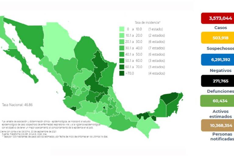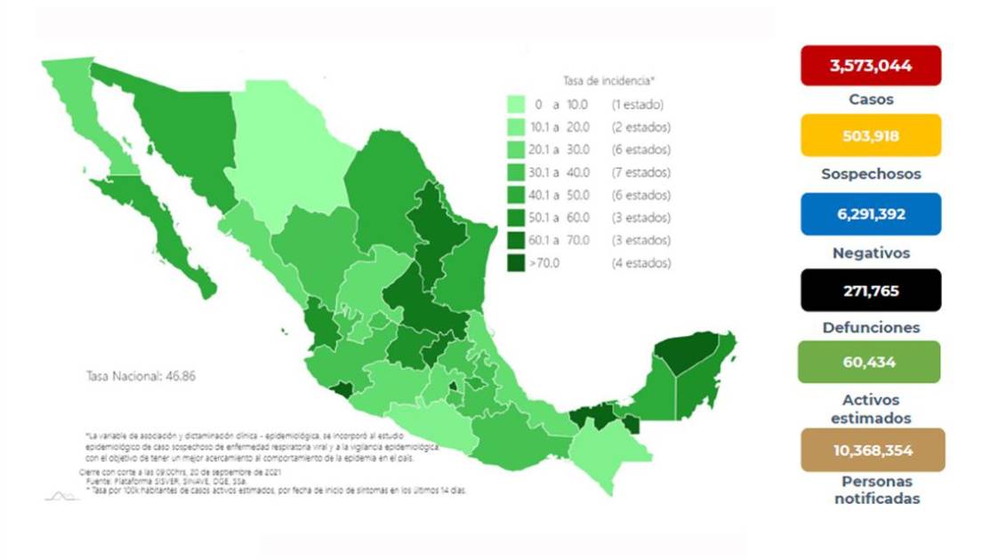 De acuerdo con los datos del reporte técnico diario de la dependencia, la tendencia de casos de Covid disminuyó un 25 por ciento, entre las semanas 35 y 36 del año.
