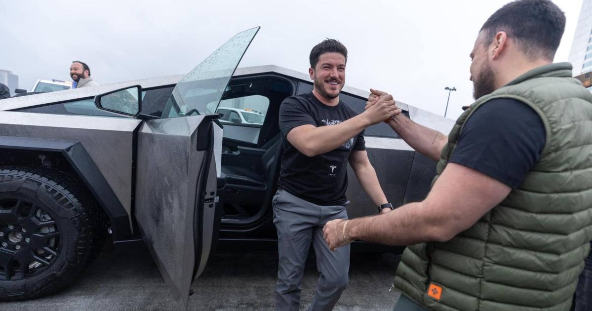 Samuel García llega a evento conduciendo una Cybertruck de Tesla