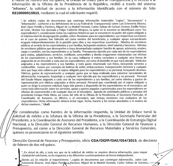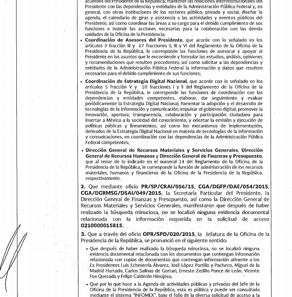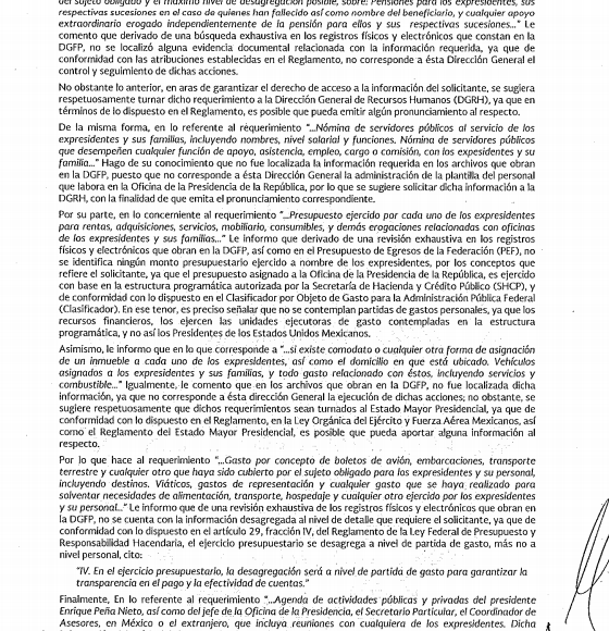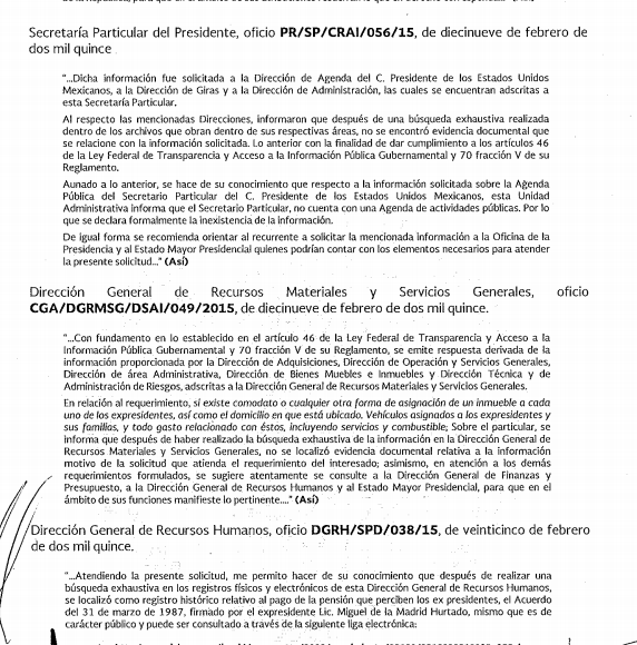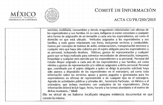 Este gasto público se sustenta en el acuerdo 2763 Bis del 31 de marzo de 1987 que tuvo que haber firmado el entonces Presidente de la República, Miguel de la Madrid Hurtado. Sin embargo, la Presidencia de la República de Enrique Peña Nieto sostuvo en la solicitud de información 0210000107116 que en sus archivos no cuenta con el documento original y por lo tanto, no le puede brindar copia certificada a los ciudadanos; pero que este puede ser consultado en el vínculo: