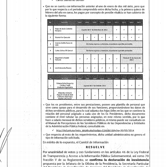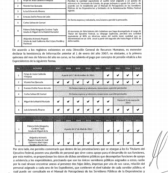 Si bien fue durante el Gobierno de Vicente Fox Quesada cuando se iniciaron los mecanismos de Transparencia en México, la Presidencia de la República no cuenta con el registro del gasto en pensiones vitalicias antes de 2007, justo el periodo del foxismo.