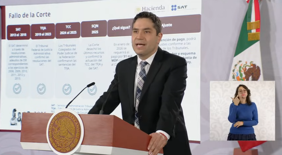 Antonio Martínez Dagnino, director del Servicio de Administración Tributaria, informó que Grupo Salinas deberá pagar 51 mil millones de pesos durante enero de 2026.