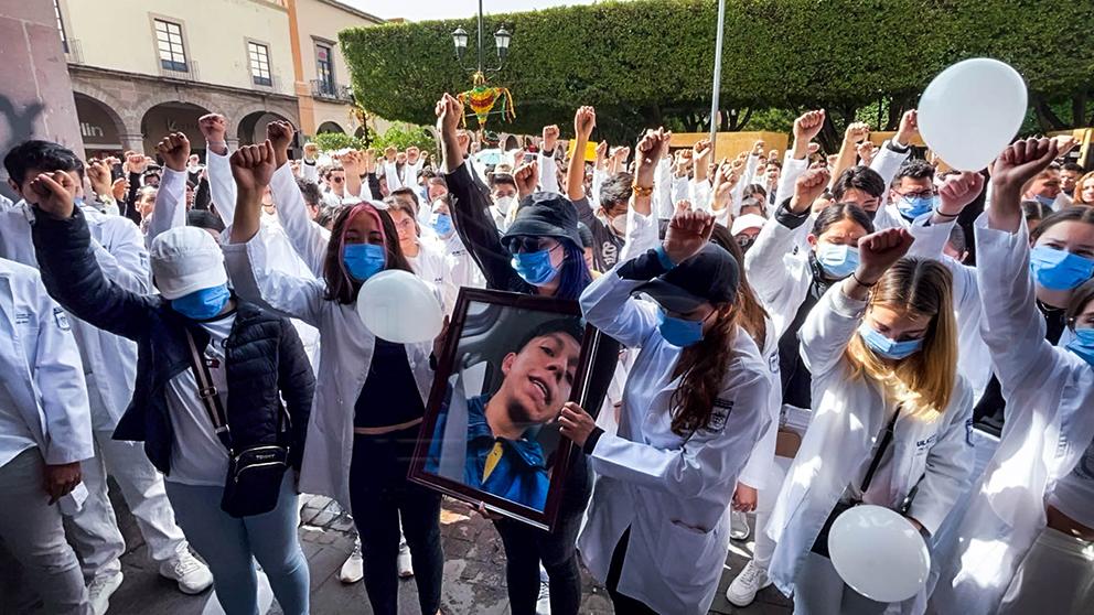 “Si matan a sus futuros médicos, ¿Quién los cuidará?”, podía leerse en la manta que llevaron como estandarte. Al frente de la protesta iban amigos y compañeros de José Eduardo, Pedro Francisco, Bryan Amoles, Virgilio Orozco y Fabian Orozco Mateos.