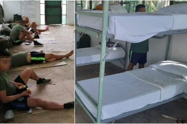 Las fotografías difundidas en redes mostraban a militares acostados sobre un pedazo de cartón mientras vestían un short y playera, internautas dijeron que el personal había sido aislado por padecer coronavirus.