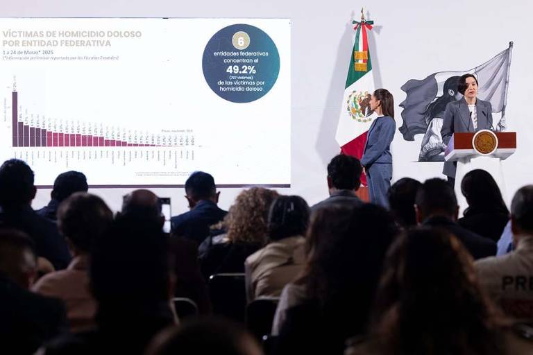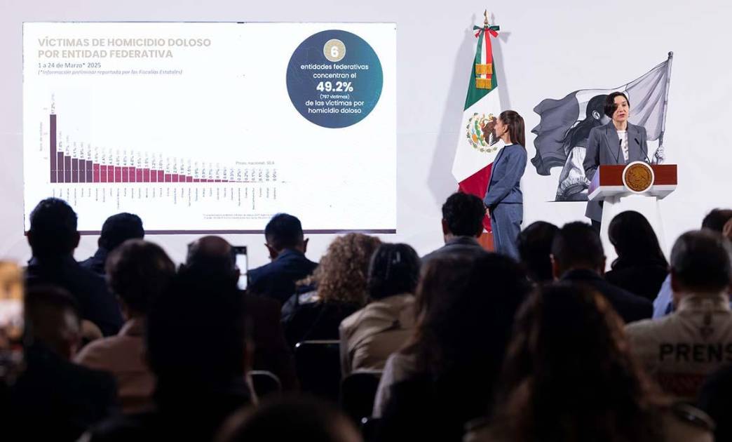 Detalló que al corte del 24 de marzo de 2025 y con información de las fiscalías estatales, el promedio diario anual de víctimas por homicidio doloso era de 73.4 por ciento (797), casi la mitad de los mil 552 registrados.
