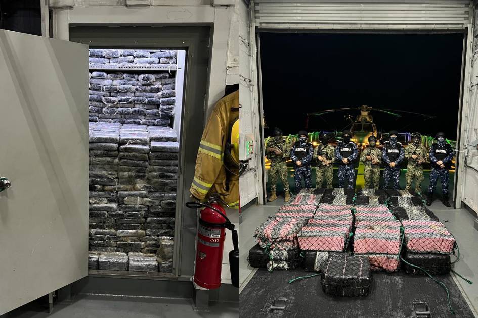 Personal de la Décima Cuarta Zona Naval, logró el aseguramiento de 33 bultos de cocaína, con un peso aproximado de mil 400 kilogramos a aproximadamente 231 kilómetros de las costas del puerto de Lázaro Cárdenas, Michoacán.