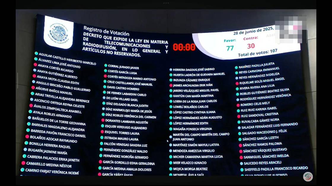 El Senado aprobó la nueva Ley en Materia de Telecomunicaciones y Radiodifusión, que plantea una reestructura del marco regulatorio del sector. Movimiento Ciudadano acompañó a Morena, Partido Verde y Partido del Trabajo para sumar 77 votos a favor, frente a los 30 de PAN y PRI.