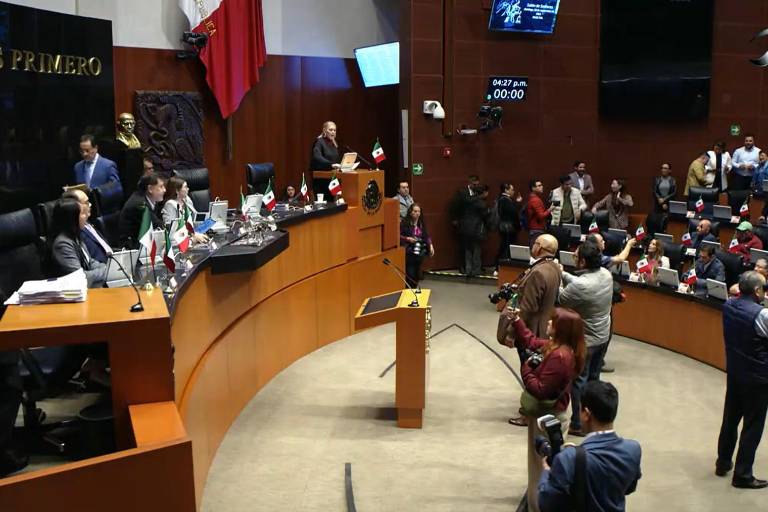 De manera similar a lo ocurrido con la reforma al Poder Judicial el 13 de septiembre, la parte izquierda del pleno del Senado lució vacía tras el anuncio el pasado viernes por legisladores del PRI, PAN y Movimiento Ciudadano de no asistir por no estar de acuerdo con la reforma aprobada en una sesión nocturna el 24 de septiembre pasado, con 86 votos a favor y 42 en contra.