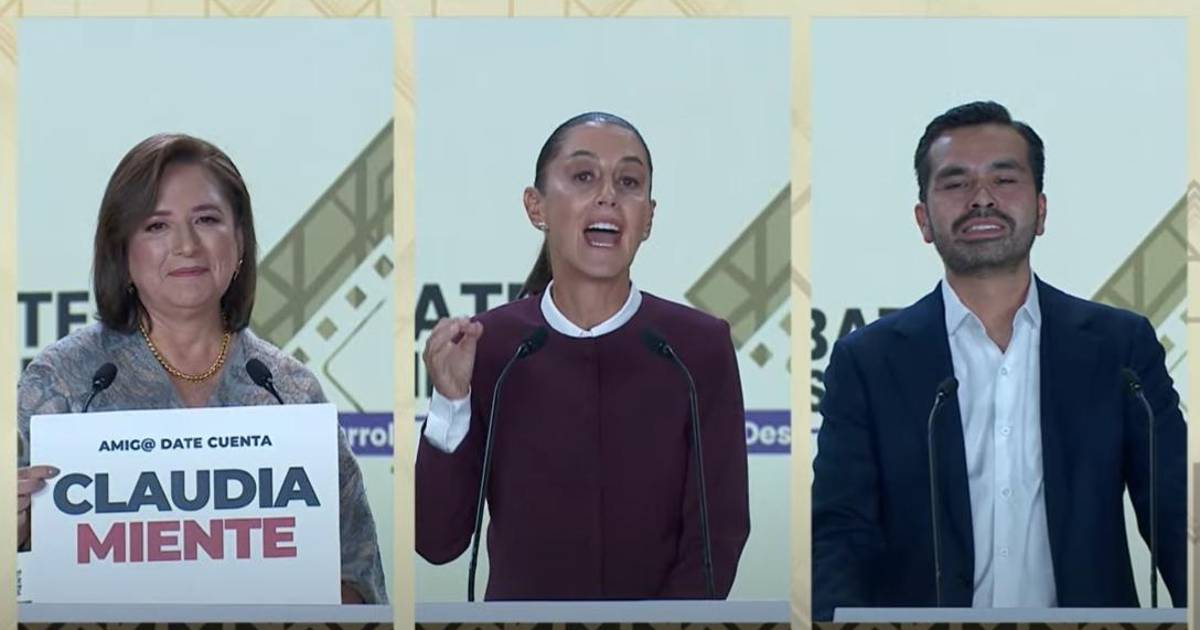 Durante la participación de Claudia Sheinbaum, Gálvez Ruiz irrumpió diciendo: “mientes, mientes”, y sacó un cartel con la leyenda “Claudia miente”.