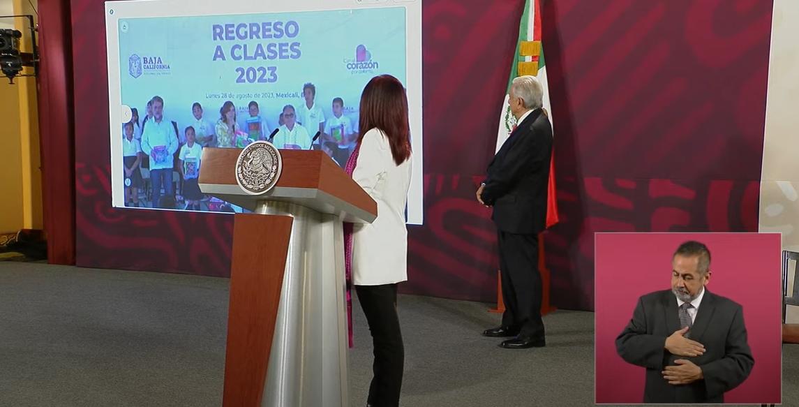Leticia Ramírez Amaya, Secretaria de Educación, realizó una ceremonia inaugural desde la conferencia de prensa matutina presidencial con enlaces a eventos cívicos en la Ciudad de México, Durango, Michoacán, Guerrero, Baja California, Quintana Roo y Tamaulipas.