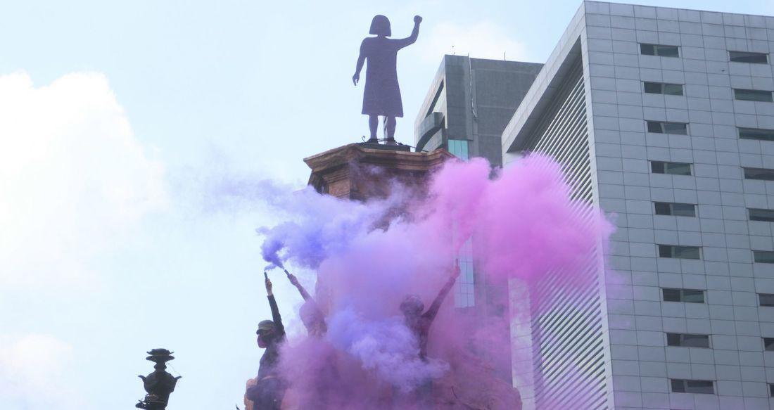 “Glorieta de mujeres que luchan” será el nombre de esta nueva antimonumenta instalada por el colectivo de mujeres que tomó el espacio esta mañana en avenida Paseo de la Reforma.
