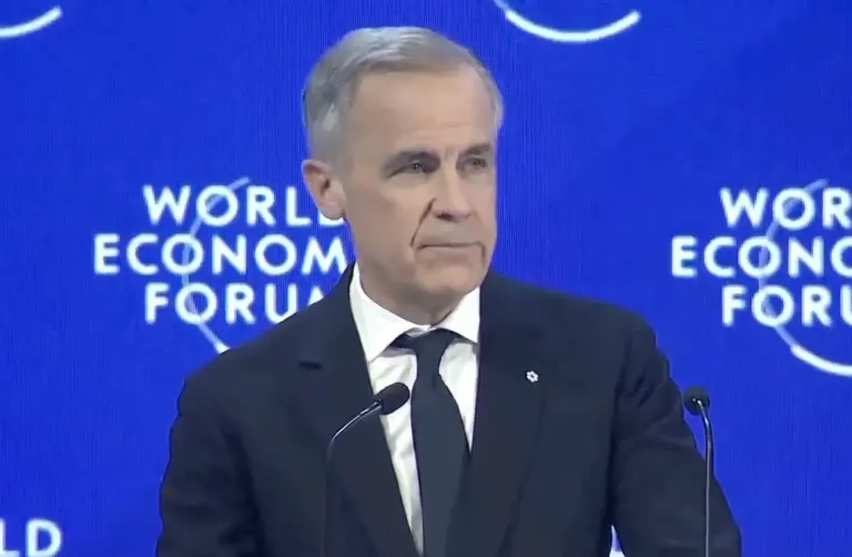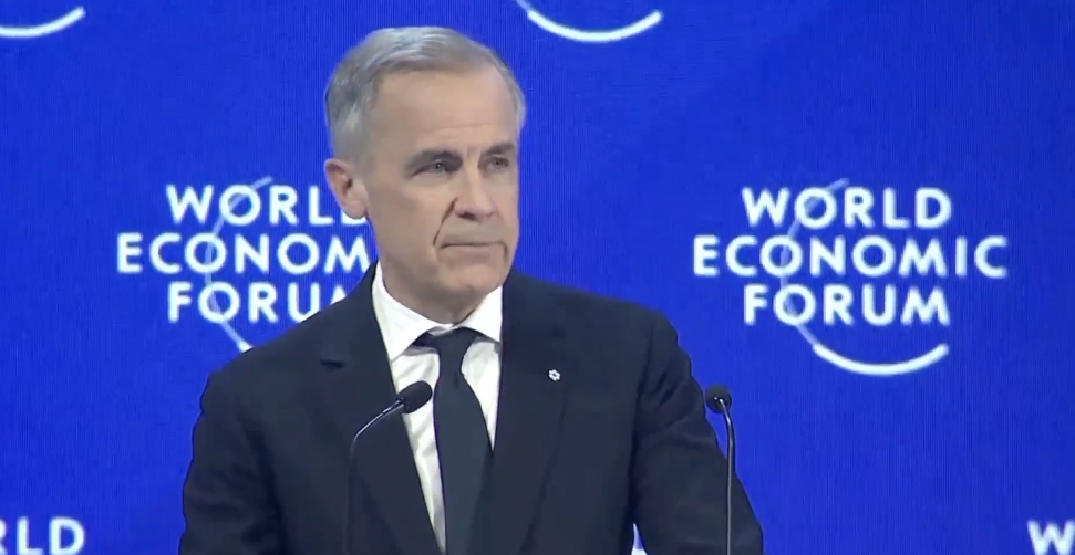 El 20 de enero, Carney pronunció un discurso en el Foro Económico Mundial de Davos, en el cual aseguró que el sistema de gobernanza global no volverá a ser como antes y que el mundo enfrenta una ruptura del orden mundial que obliga a las potencias medias a actuar juntas.