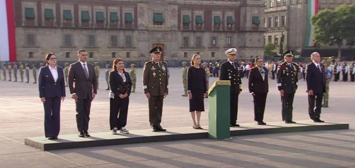 Sheinbaum Pardo caminó desde Palacio Nacional hasta el asta bandera de la Plaza de la Constitución, donde realizó honores a la bandera y se entonó el Himno Nacional. En punto de las 07:19, hora en que se produjo el sismo del 19 de septiembre de 1985, izó a media asta la bandera colocada en el Zócalo de la capital de la República.