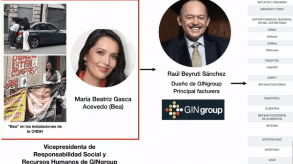 Claudia Sheinbaum Pardo, jefa de Gobierno de la Ciudad de México, afirmó que Raúl Beyruti Sánchez y María Beatriz Gasca Acevedo, presidente y vicepresidenta de Responsabilidad Social y Recursos Humanos de GIN Group, respectivamente, son quienes financian la toma de la sede de la Comisión Nacional de Derechos Humanos (CNDH), ubicada en la calle Cuba número 60, en el Centro Histórico, de la capital de la República.