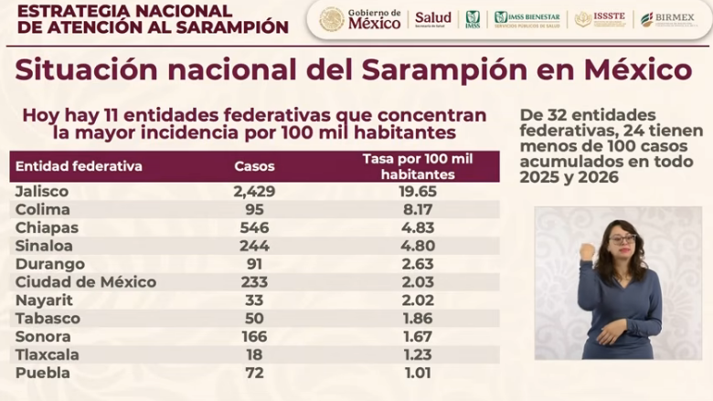 En el reporte semanal sobre la situación del sarampión en México, presentado por la Secretaría de Salud, Sinaloa se mantiene entre las entidades con más casos.
