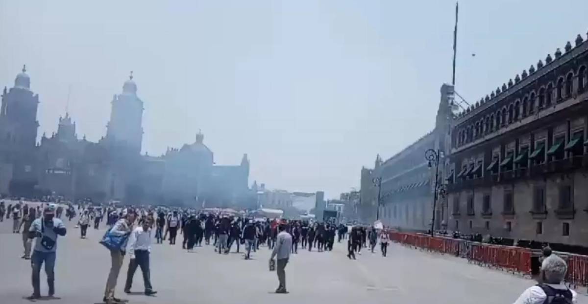 Supuestos normalistas de Ayotzinapa arrojan petardos a Palacio Nacional