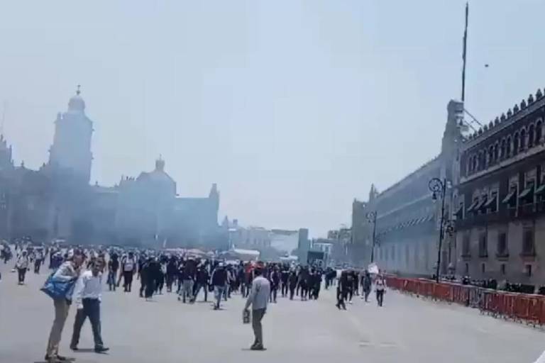 Elementos de la Secretaría de Seguridad Ciudadana de la Ciudad de México resguardaban el Palacio Nacional, detrás de unas vallas metálicas, cuando los presuntos estudiantes comenzaron a aventar los explosivos de fabricación casera.