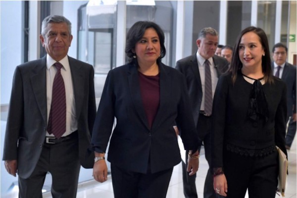 Irma Eréndira Sandoval Ballesteros escoltada por sus dos subsecretarios ligados al Despacho Vázquez Nava.