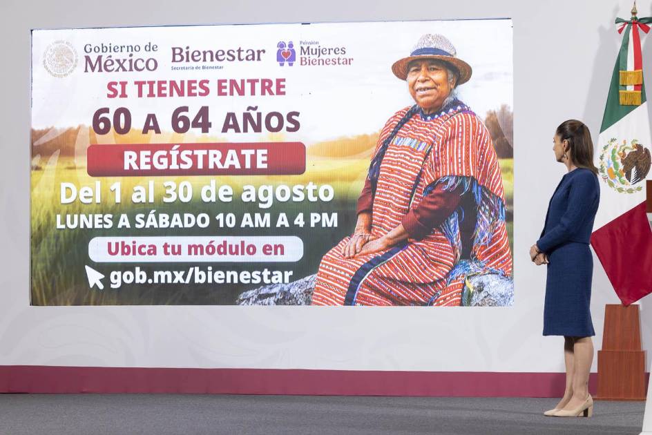 “Inicia el 1 de agosto la inscripción para las mujeres de 60 a 62 años, 60, 61 y 62 de la Pensión Mujeres Bienestar. Y para que todas las que nos escuchan que estén en este rango de edad, que se preparen para poder hacer su inscripción, porque este año cumplimos la promesa, el compromiso, de que las mujeres de 60 a 64 van a tener la Pensión Mujeres Bienestar”, puntualizó en la conferencia matutina.