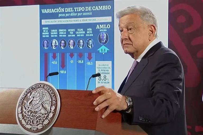 El Presidente Andrés Manuel López Obrador presumió que durante su Gobierno el peso mexicano se apreció un 8 por ciento y no se devaluó, como, según él, sí lo hicieron sus antecesores, desde Luis Echeverría Álvarez, José López Portillo, Miguel de la Madrid Hurtado; Carlos Salinas de Gortari; Ernesto Zedillo Ponce de León, Vicente Fox Quesada; Felipe Calderón Hinojosa, hasta Enrique Peña Nieto.