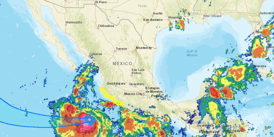 Alrededor de las 09:00 horas, el huracán se encontraba a 475 km al suroeste de Manzanillo, Colima, y a 480 km al sur-suroeste de Playa Pérula, Jalisco.