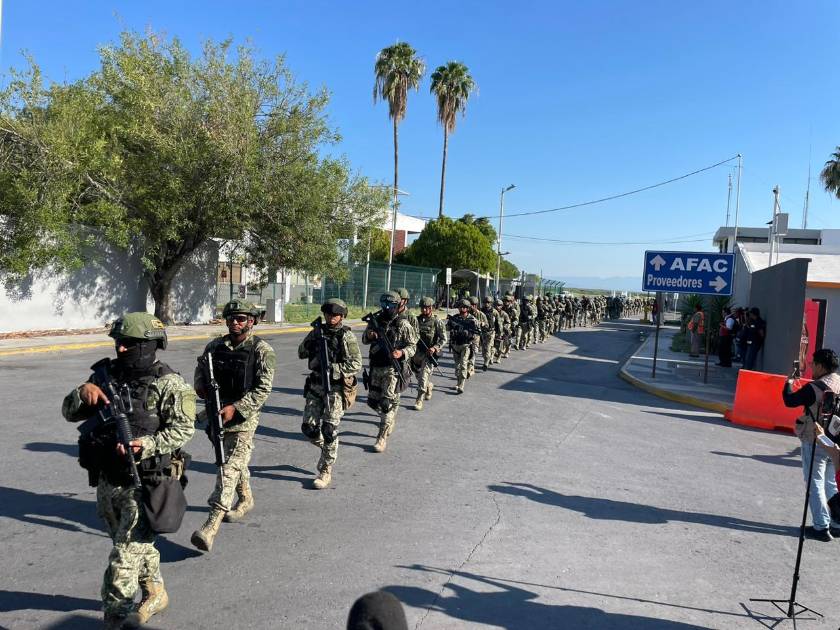 Los efectivos del Ejército llegaron vía aérea a la Terminal B del Aeropuerto Internacional Mariano Escobedo en un avión Boeing 737, procedente de la Base Aérea Militar de Santa Lucía, en Ciudad de México.