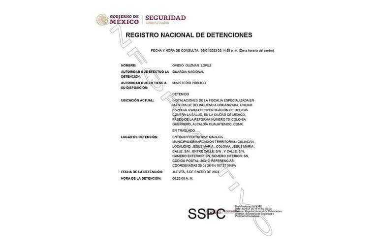 Ovidio Guzmán López, “El Ratón” -hijo del capo Joaquín “El Chapo” Guzmán Loera, así como presunto líder de “Los Menores”, afín al Cártel de Sinaloa-, detenido tras un operativo de fuerzas federales, llevado a cabo este jueves 5 de enero, en Culiacán, Sinaloa, fue trasladado por vía aérea al penal de máxima seguridad de El Altiplano.