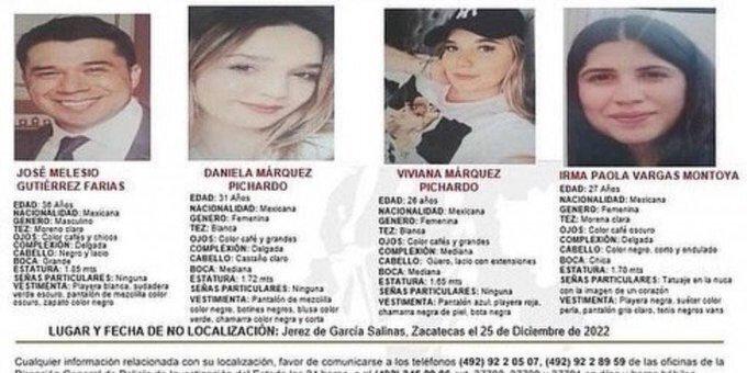Daniela Márquez Pichardo, de 31 años de edad, su prometido José Melesio Gutiérrez Farías, de 36 años de edad, su hermana Viviana Márquez Pichardo, de 26 de edad, y su prima Irma Paola Vargas Montoya, de 27 años de edad, desaparecieron el día de Navidad de 2022, en el poblado de Víboras, en Tepetongo.
