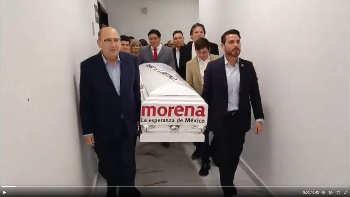 Una corona fúnebre y un ataúd montados en el Pleno de la Cámara de Diputados enmarcaron la aprobación de la Ley en Materia de Telecomunicaciones y Radiodifusión, una legislación que los partidos de oposición han calificado como “ley censura” y que Morena defiende a capa y espada con sus aliados.