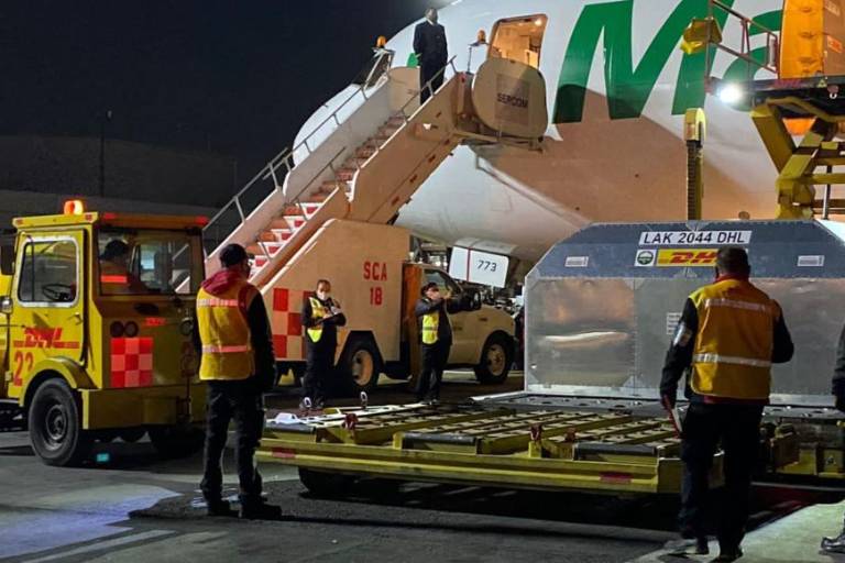A través de su cuenta de Twitter, Laboratorios de Biológicos y Reactivos de México compartió un video sobre el momento en que se desembarcaron los biológicos elaborados por Pfizer y BioNTech, convenio farmacéutico del que se espera otro embarque con 585 mil dosis en el transcurso del día.