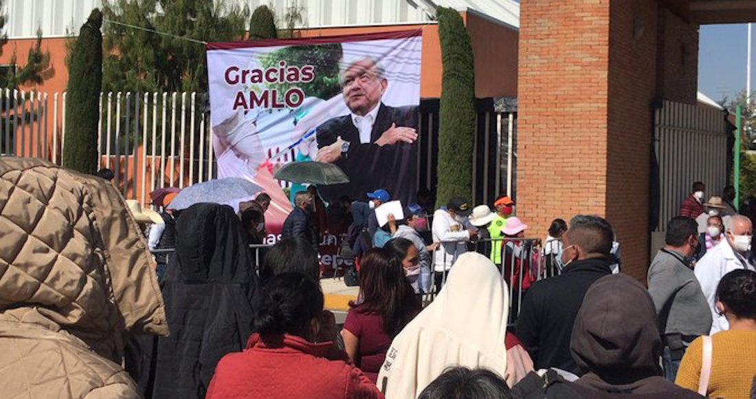 Una manta para agradecer a AMLO es colocada en centro de vacunación de Edomex y genera críticas en redes