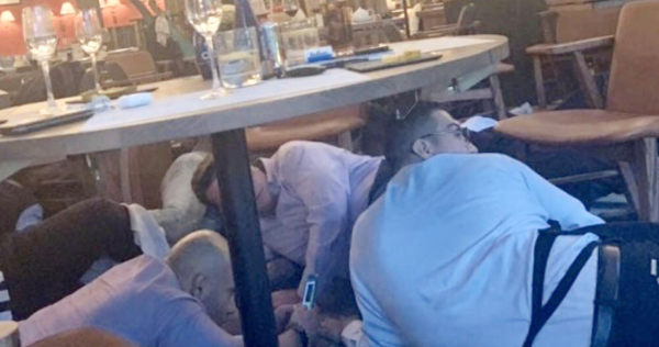 Usuarios de redes sociales han compartido imágenes que ilustran el pánico que se generó al interior de la plaza comercial. Otras fotografías muestran a dos hombres gravemente heridos.