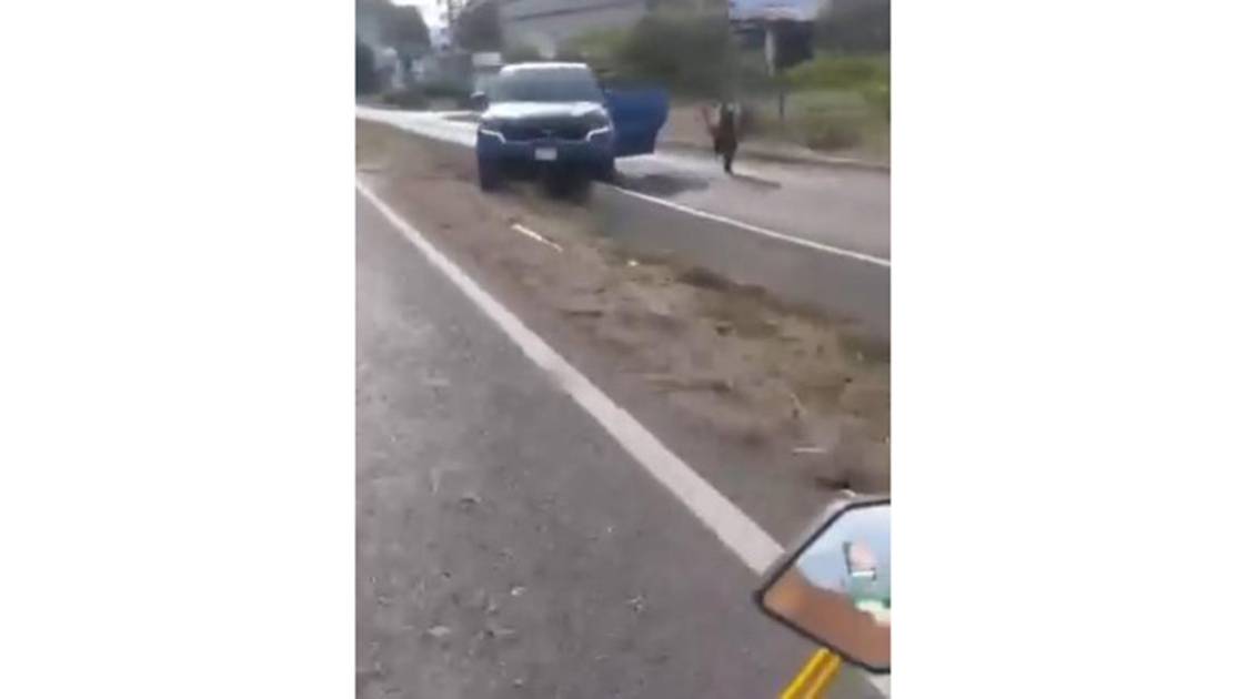 En las imágenes se ve una camioneta azul detenida y mientras el conductor de la moto se acerca, se escuchan los gritos de la menor. El vehículo tiene varios disparos y se observa que hay personas al interior.