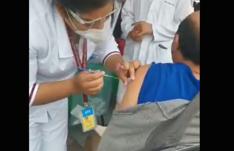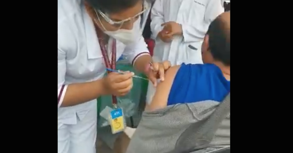 En un video que tomó una familiar del hombre se ve que la enfermera limpia el brazo izquierdo del adulto e introduce la jeringa vacía, un par de segundos después la saca.