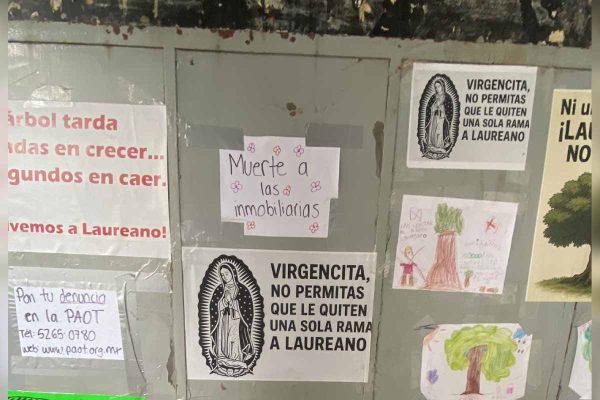 Al menos desde el pasado 2 de junio, los vecinos de la colonia Tlacoquemécatl han manifestado que la empresa “Núcleo Urbano” tenía intenciones de derribar al laurel, al que bautizaron como Laureano, junto con otro árbol que se encuentra al exterior del predio.