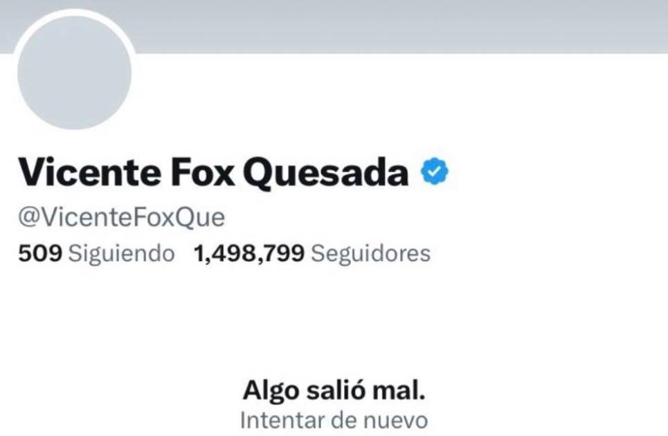Al ingresar al usuario de Fox Quesada en X (@VicenteFoxQue) -la cual contaba con un millón 498 mil 799 seguidores-, aparecía una imagen con la leyenda: “esta cuenta no existe”, además de que desapareció la descripción y la fotografía de perfil.