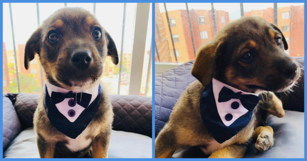 La fundación colombiana compartió dos fotografías de “Vicente”, en las que se observa al perro con un pañuelo que simuló un smokin con un moño azul.