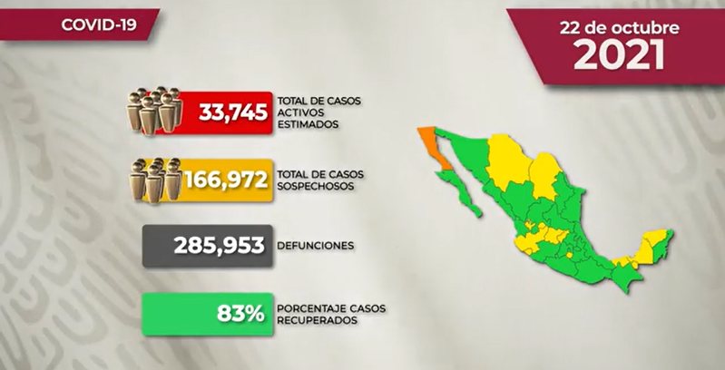 ¿Cuál es el escenario actual de #México ante la pandemia de #Covid-19? Aquí el reporte de la Secretaría de Salud hasta este viernes 22 de octubre de 2021