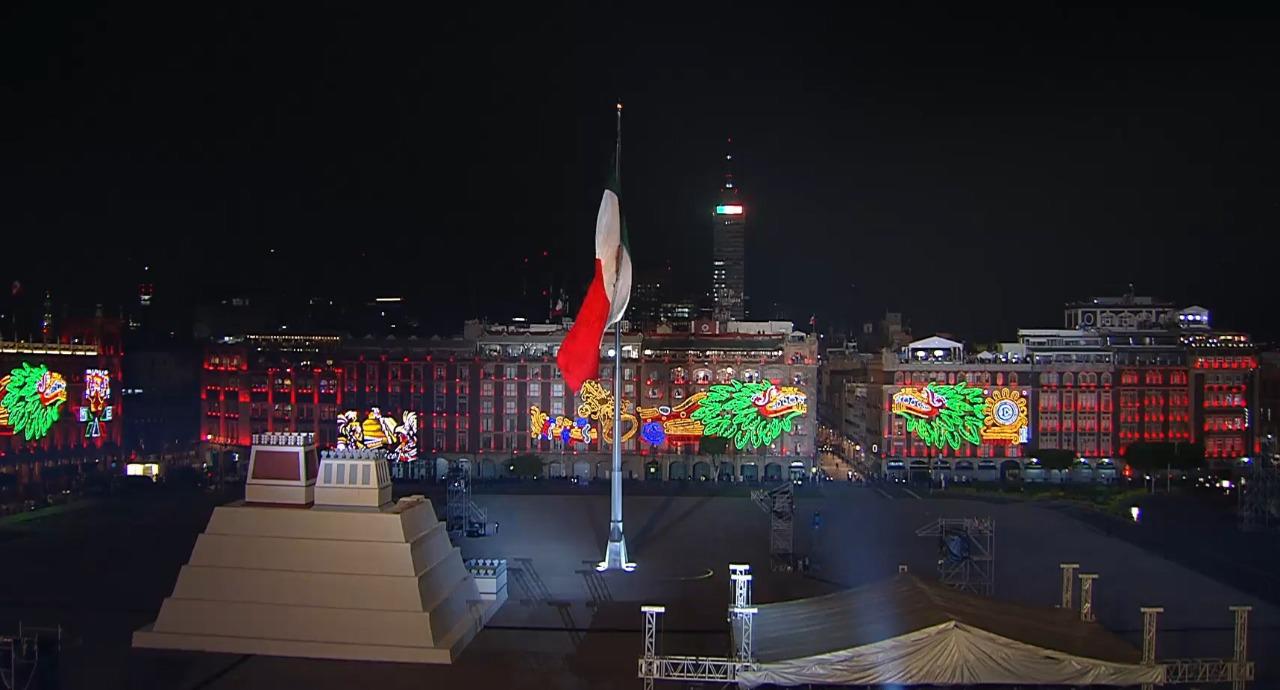 En la Plaza de la Constitución se instaló una maqueta monumental del antiguo Templo Mayor sobre la que se proyectó un video de la fundación, resistencia e Independencia de México al igual que sobre la fachada de la Catedral Metropolitana, cuyas campañas resonaron como cada año.