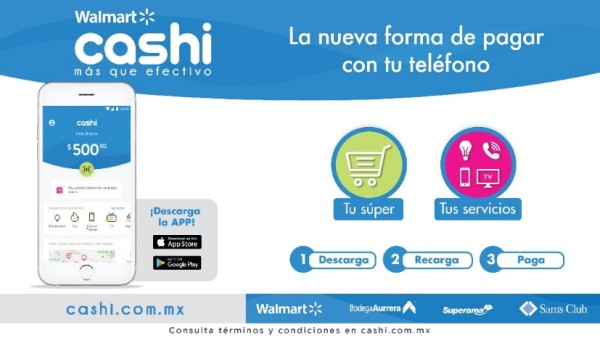 Walmart de México lanzó su cartera digital (e-wallet), denominada Cashi, que permite pagar productos en tienda o los servicios en línea, como luz, teléfono y hasta Uber, sin tener que usar una tarjeta de crédito.