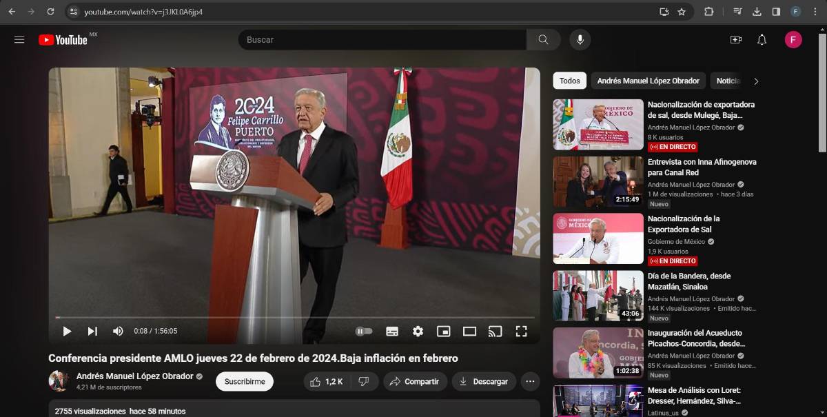 Minutos después, la “mañanera” del 22 de febrero de 2024, fue subido de nueva cuenta a los citados canales, pero editado, debido a que se eliminó la mención del número telefónico de la periodista estadounidense. Durante en el cual la grabación no fue visible en dicha plataforma, se pudo observar la leyenda: “Este video se quitó debido a que infringe la política de YouTube sobre acoso y bullying”.
