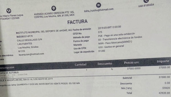 Hace un mes se dio a conocer que el IMDA pagó seis facturas por un total de 182 mil 600 pesos a nombre de Mario Hilario Flores Leyva, supuestamente por la renta de un camión para llevar selecciones municipales a eventos deportivos.