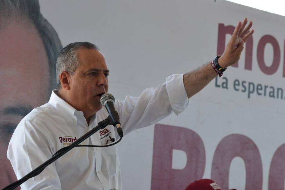 AHOME._ Durante un evento en el que acompañó a Rubén Rocha Moya, candidato de Morena-PAS a la Gubernatura de Sinaloa, Gerardo Vargas Landeros se lanzó contra el Gobernador Quirino Ordaz Coppel y lo responsabilizó por el embargo impuesto al camarón por parte de Estados Unidos.