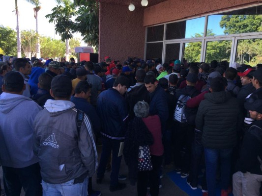 Cientos de personas abarrotaron la explanada del auditorio Héroes de Sinaloa con papeles en mano en busca de ser tomados en cuenta por la empresa americana.