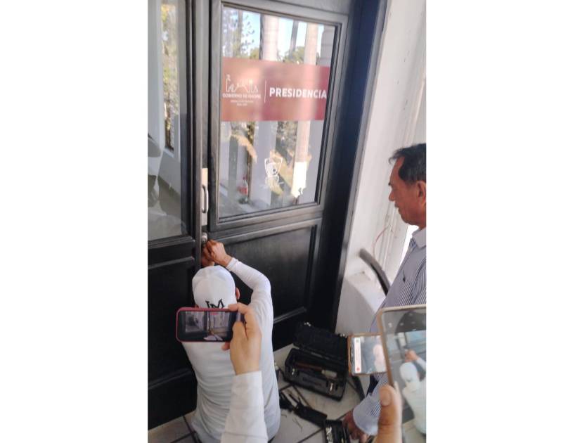 Cerrajero abre paso al Palacio Municipal al recién nombrado Alcalde sustituto de Ahome
