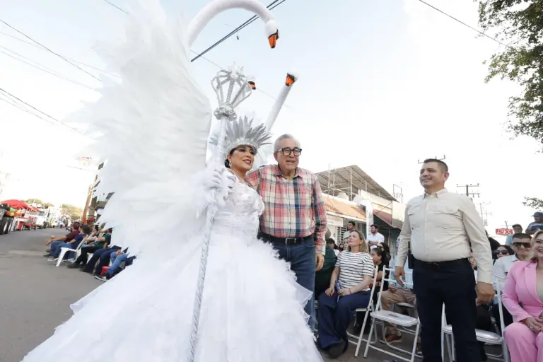 En un encuentro para celebrar las tradiciones de Sinaloa, el gobernador Rubén Rocha Moya, acompañó al Alcalde Alberto “El Capy” Rivera, para presenciar el desfile de carros alegóricos del Carnaval Angostura 2026, denominado “Aventuras mágicas: un viaje al ritmo de fantasía”.