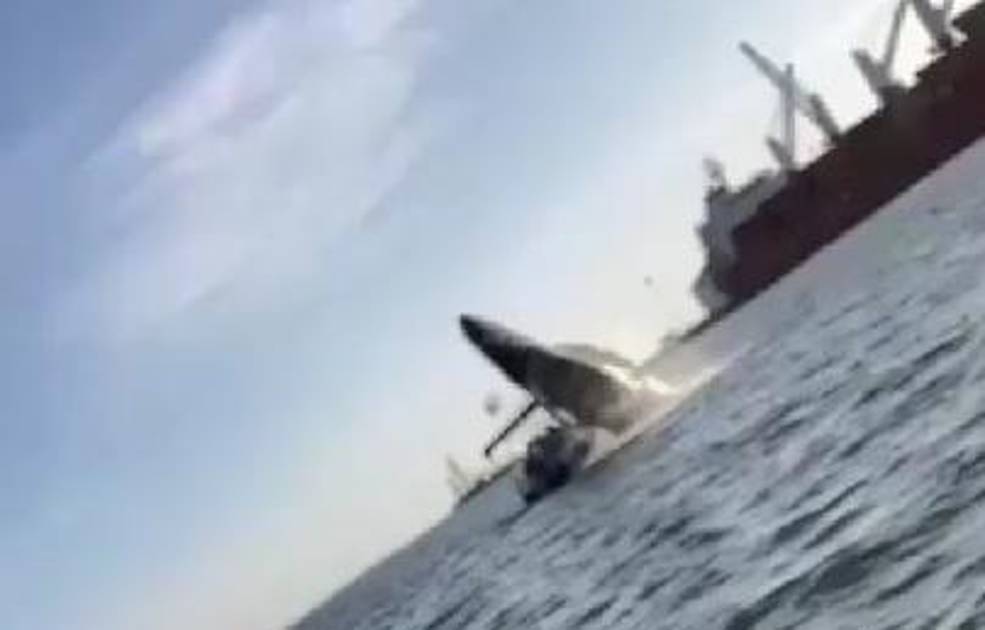 La escena quedó registrada en varios videos. En ellos se observa al bote que navega en la bahía, cuando al acercarse demasiado al cetáceo este da un salto y cae sobre la embarcación, la cual resistió la embestida y se mantuvo a flote, sin embargo, con sus tripulantes golpeados y asustados.