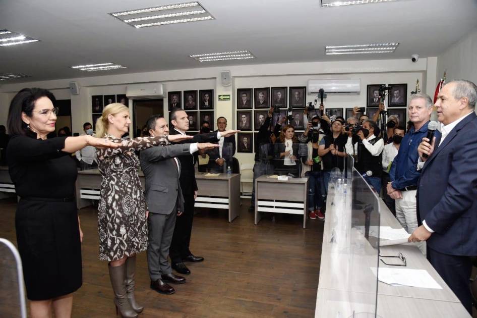 LOS MOCHIS._ El Alcalde Gerardo Vargas Landeros tomó protesta a los titulares de las nuevas secretarías del Ayuntamiento de Ahome: del Bienestar, de las Mujeres, de Seguridad y Protección Ciudadana, y de Obras Públicas, Urbanismo y Ecología.
