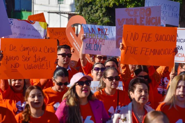 El contingente, teñido de color naranja, símbolo de la campaña global Únete, gritó consignas como “Ni una más ni una menos” y “Mujer escucha, esta es tu lucha”.