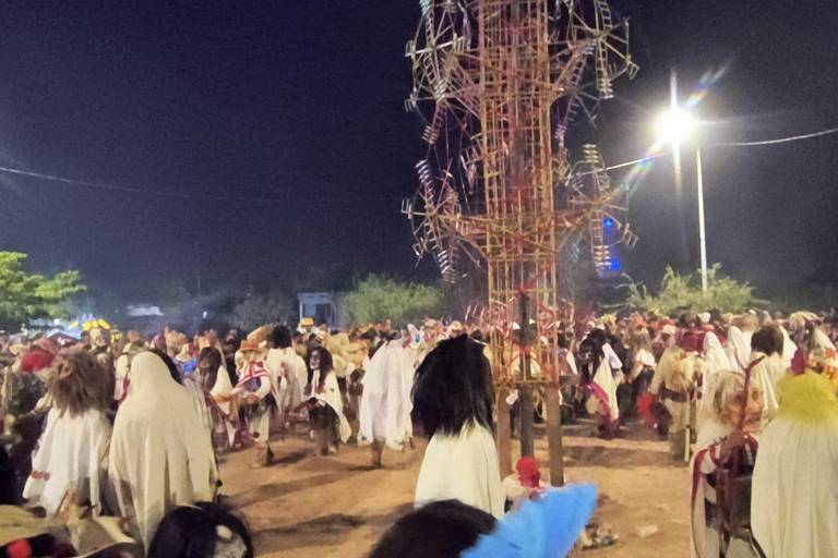 SAN MIGUEL ZAPOTITLÁN, Ahome._ Con el inconfundible sonido de los tambores, el crujir de los tenabaris y el profundo misticismo que envuelve a la cultura Mayo-Yoreme, la noche del Viernes Santo en San Miguel Zapotitlán registró una afluencia masiva, superando la cifra de 50 mil asistentes.