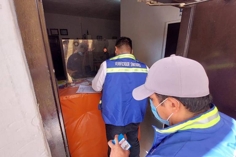 A las 10:50 horas llega un vehículo con logotipos de la SSA, son dos verificadores de Coepriss los que se bajan del vehículo con tablas portapapeles, listos para realizar una revisión del sitio y constatar la manera como operan.